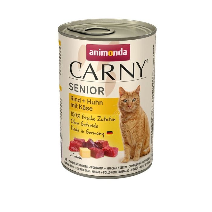 Animonda Carny Senior to pełnowartościowy, kompletny, mięsny pokarm, z łatwymi do pogryzienia kawałeczkami, dla kotów od 7-go roku życia.