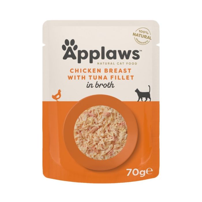 Applaws Cat Adult Chicken with Tuna in Broth to naturalna, bezzbożowa karma uzupełniająca dla dorosłych kotów.