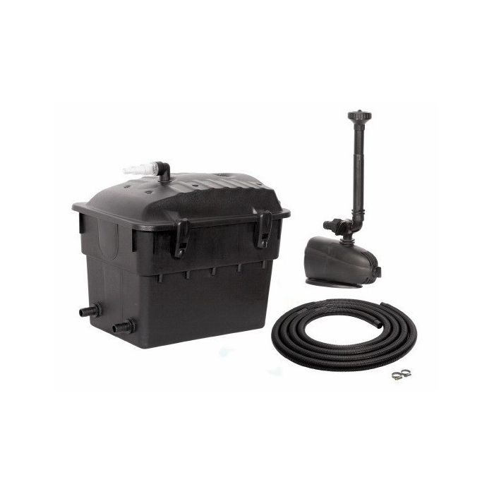 Usuwa z wody zanieczyszczenia mechaniczne i rozpuszczone w niej związki azotowe. Skutecznie zwalcza glony pływające oraz szkodliwe bakterie i pierwotniaki. - kompletny zestaw: pompa, rozprysk, filtr, wąż, lampa UV-C - gwarantuje czystą wodę w ciągu 14 dni - jest przystosowany do pracy ciągłej - przeznaczony do pracy na zewnątrz oczka.