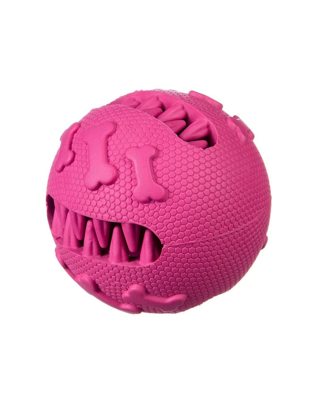 Wytrzymała piłka z kauczuku. Dobrze się odbija, a dzięki nierównej strukturze czyści zęby i masuje dziąsła.