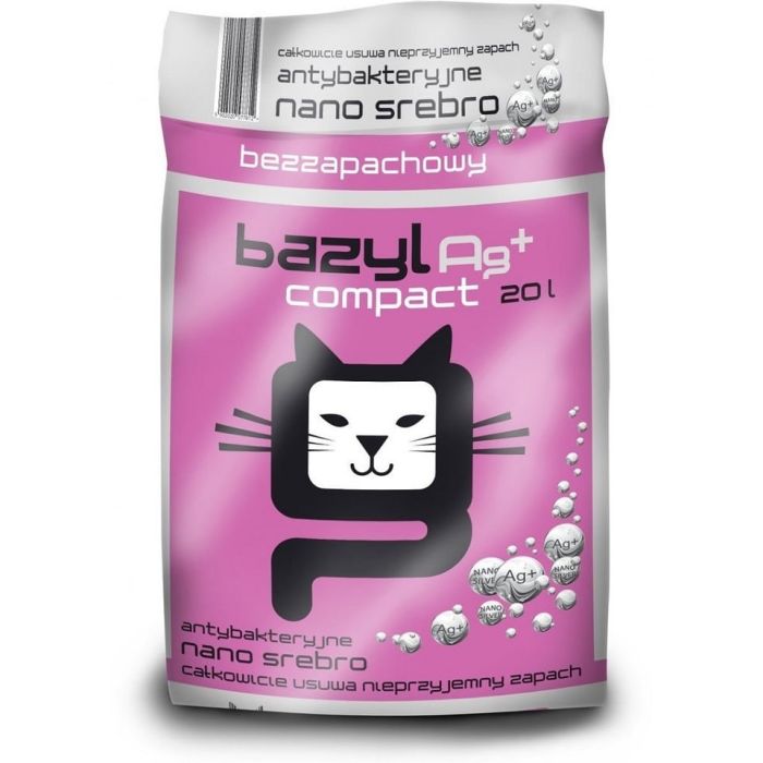 Żwirek Bazyl Ag+ Compact to bezwonny, bardzo drobny żwirek wykonany z najwyższej jakości glinki bentonitowej (ponad 80% montmorylonitu) wzbogaconej dobroczynnym nanosrebrem, które działa jak naturalny antybiotyk, działa antyseptycznie i dezynfekująco.