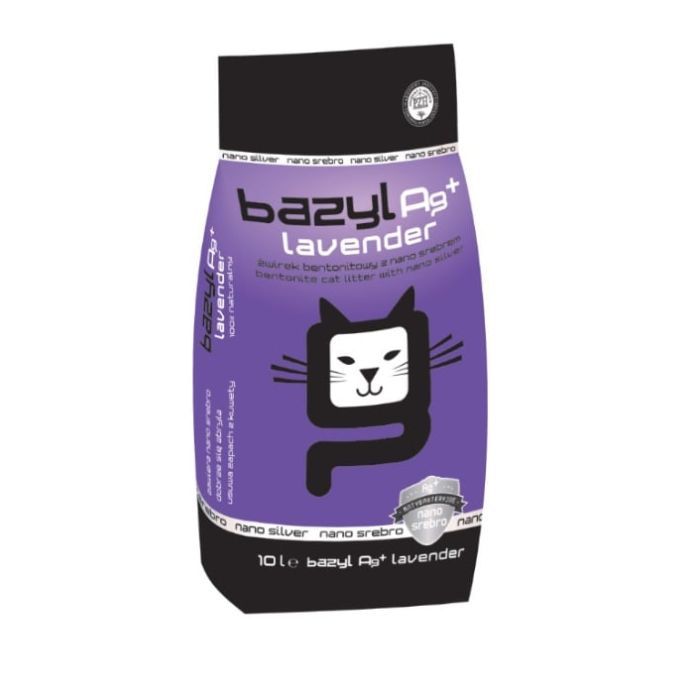 BAZYL Ag+ Lavender 10 L żwirek bentonitowy z nano srebrem o zapachu lawendy dla kota