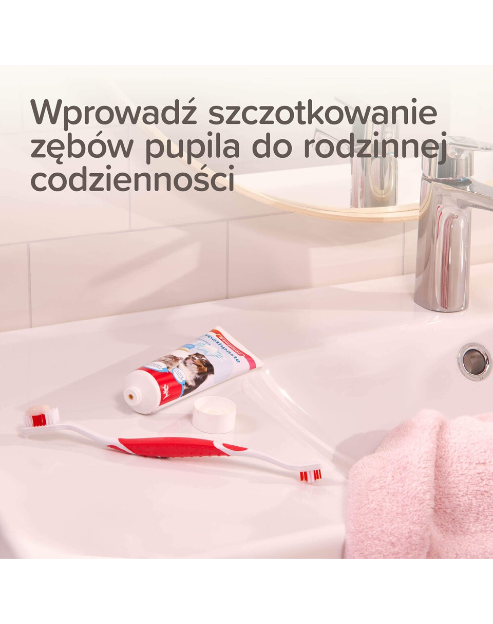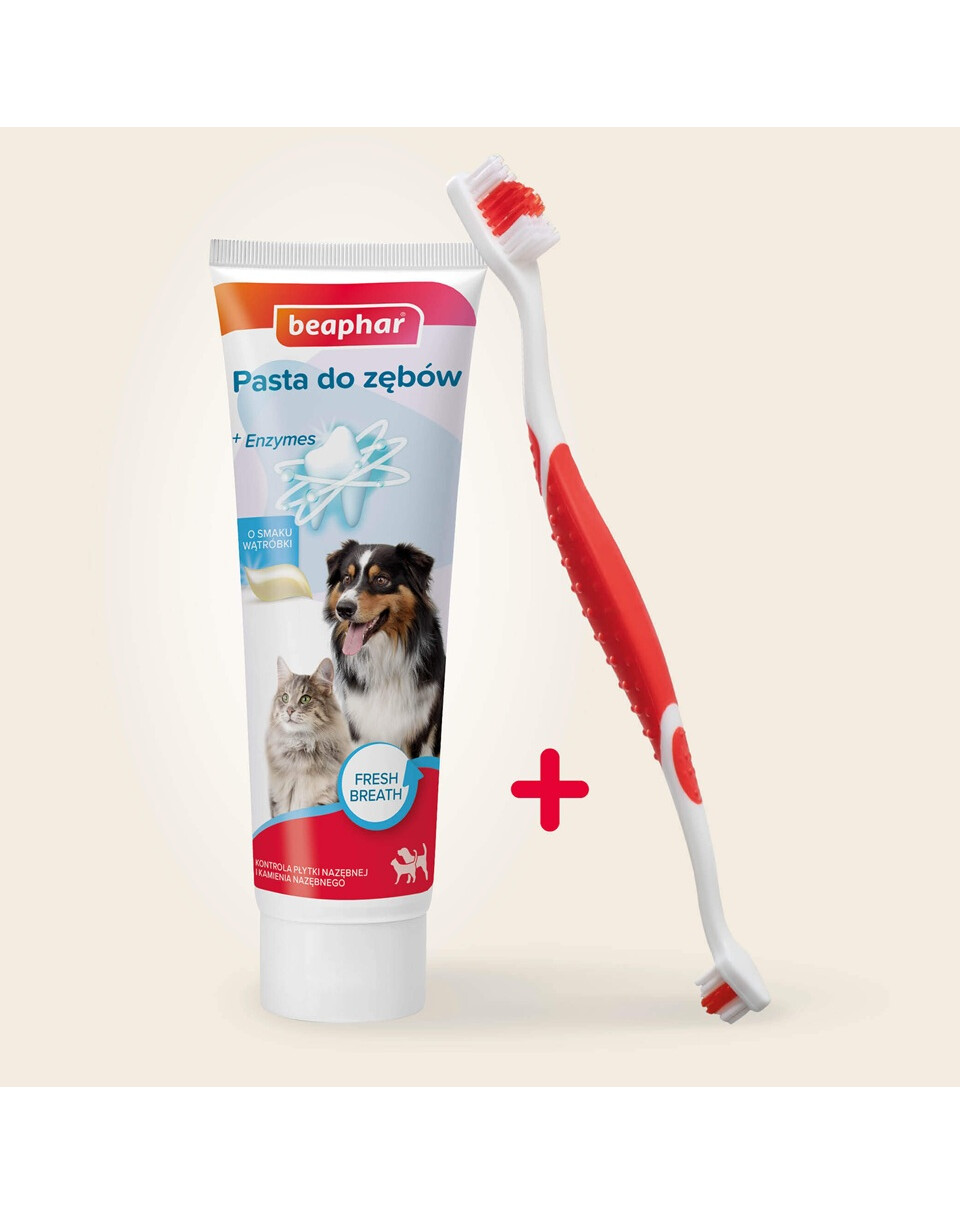 Pasta Beaphar jest bez fluoru i ksylitolu, dzięki czemu jest bezpieczna dla zwierząt. Zawarte w niej enzymy wspierają higienę jamy ustnej, pomagając utrzymać zdrowe dziąsła i świeży oddech.