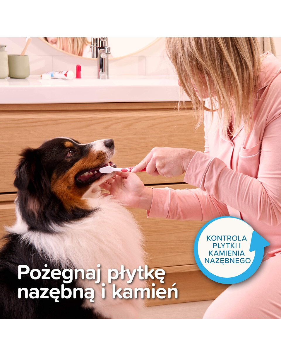Szczoteczka i pasta z enzymami działają razem, by skutecznie ograniczyć odkładanie się płytki i kamienia. Regularne szczotkowanie usuwa osad, a enzymy wspomagają redukcję bakterii i nieprzyjemnego zapachu z pyska.