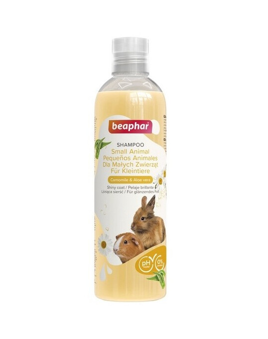 Beaphar Szampon dla małych zwierząt to delikatny, łagodny preparat pielęgnacyjny stworzony specjalnie dla wrażliwej skóry królików, świnek morskich oraz innych małych zwierząt domowych. Jego neutralne pH oraz naturalne składniki, takie jak rumianek i aloes, zapewniają miękką, czystą i lśniącą sierść, jednocześnie kojąc skórę i zmniejszając ryzyko podrażnień. Szampon skutecznie usuwa zabrudzenia, pozostawiając zwierzę świeże, pachnące i zadbane.