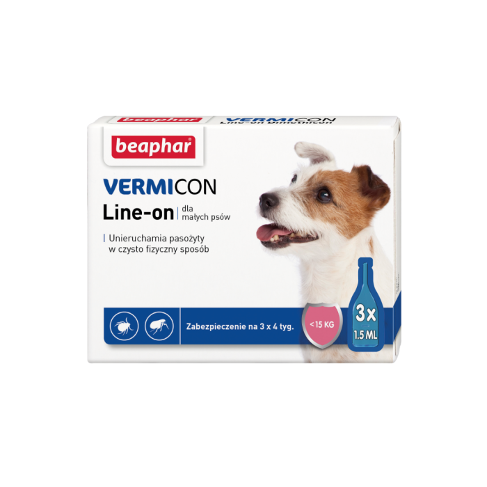 BEAPHAR Vermicon Line-On Dog S Krople Przeciw Pchłom i Kleszczom Małe Psy 3x1,5 ml