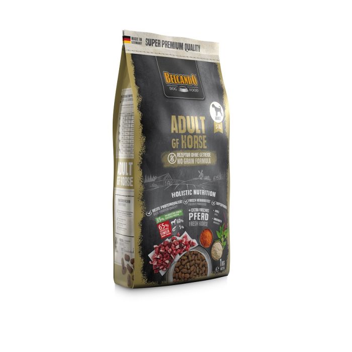 Dzięki wyjątkowo świeżemu mięsu końskiemu i wyselekcjonowanym składnikom, BELCANDO® Adult GF Horse oferuje psom wyjątkową przyjemność. Dzięki recepturze bez zbóż i smacznemu, ekskluzywnemu wariantowi mięsnemu ta sucha karma jest szczególnie odpowiednia dla wrażliwych psów. Ponadto cenne składniki dostarczają treści, które mogą częściowo zwiększyć witalność i samopoczucie psa. Na przykład amarantus, który jest cenną alternatywą dla zbóż, dostarcza ważnych składników odżywczych i witalnych. Efektem połączenia amarantusa i kryla, cennego źródła kwasów tłuszczowych omega-3, jest bardzo zbilansowana receptura.