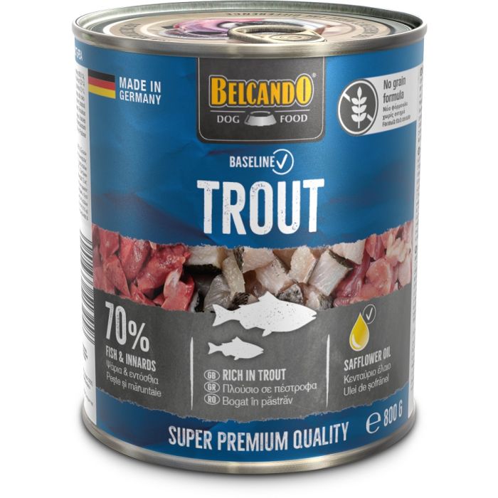 Pstrąg (26%); Bulion mięsny (28,8%); Wątroba; Żołądek; Serce; Nerki; Płuco; Skorupki jaj, suszone; Minerały; Olej szafranowy (0,2%)