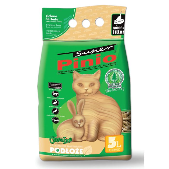 Granulki są kształtu walców o śrdnicy 6 mm i długości od 6 do 12 mm. Produkt powstały z mikrowłókien drewna sosnowego i świerkowego bez żadnych dodatków chemicznych. Żwirek jest z dodatkiem ekstraktu z zielonej herbaty i posiada jej świeży zapach.