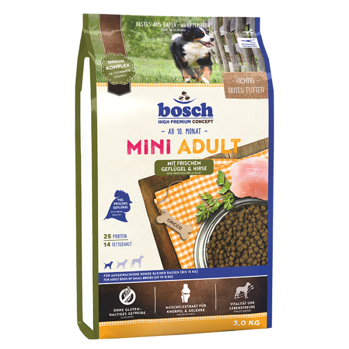 Zawiera 25% świeżego drobiu oraz 20% prosa. Nie zawiera pszenicy. Ekstrakt z małży wzmacnia stawy i chrząstki stawowe, pozwala zachować mobilność psom. Dodatek kompleksu wzmacniającego odporność, który składa się z mannanów i glukanów, stabilizuje mikroflorę jelitową. W celu zachowania niezbędnych witamin i kwasów tłuszczowych do karmy dodano mieszankę tokoferoli pochodzenia naturalnego. Granulki karmy zostały dopasowane do szczęk psów ras małych, co ułatwia im gryzienie i pobieranie pokarmu.