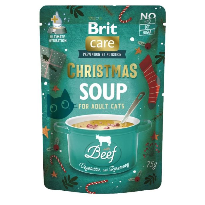 Brit Care Cat Christmas Soup to aromatyczna, świąteczna zupa dla dorosłych kotów z wołowiną, warzywami i rozmarynem.