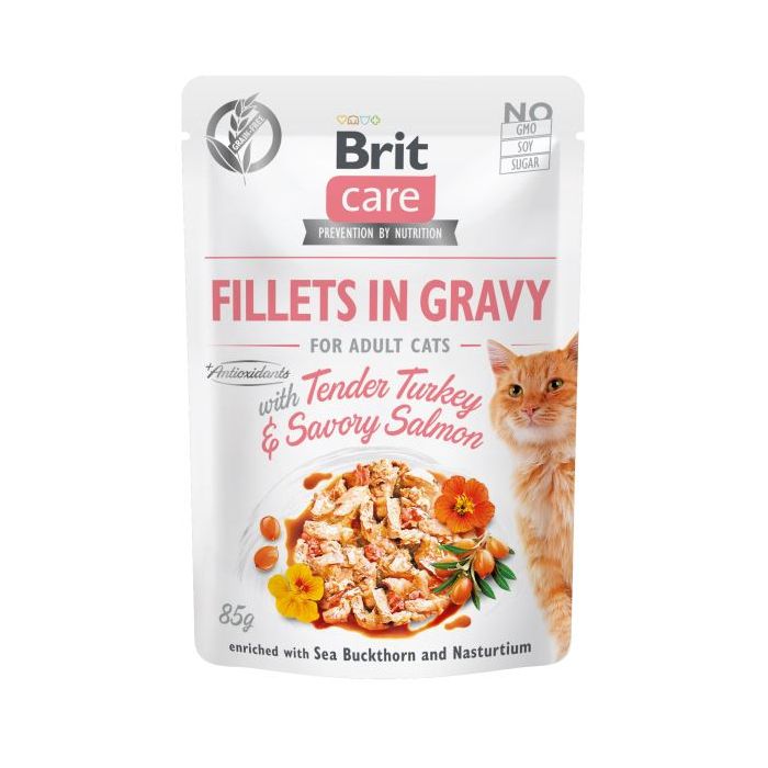 BRIT Care Fillets in gravy 24 x 85 g filety indyka i łososia w sosie