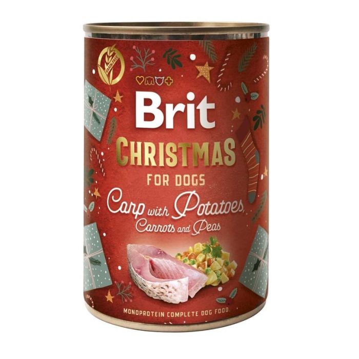 Brit Mono Protein Christmas Dinner to mokra karma dla dorosłych psów z karpiem i warzywami. Idealnie sprawdzi się jako świąteczna kolacja, dzięki swojej unikalnej kompozycji smaków.