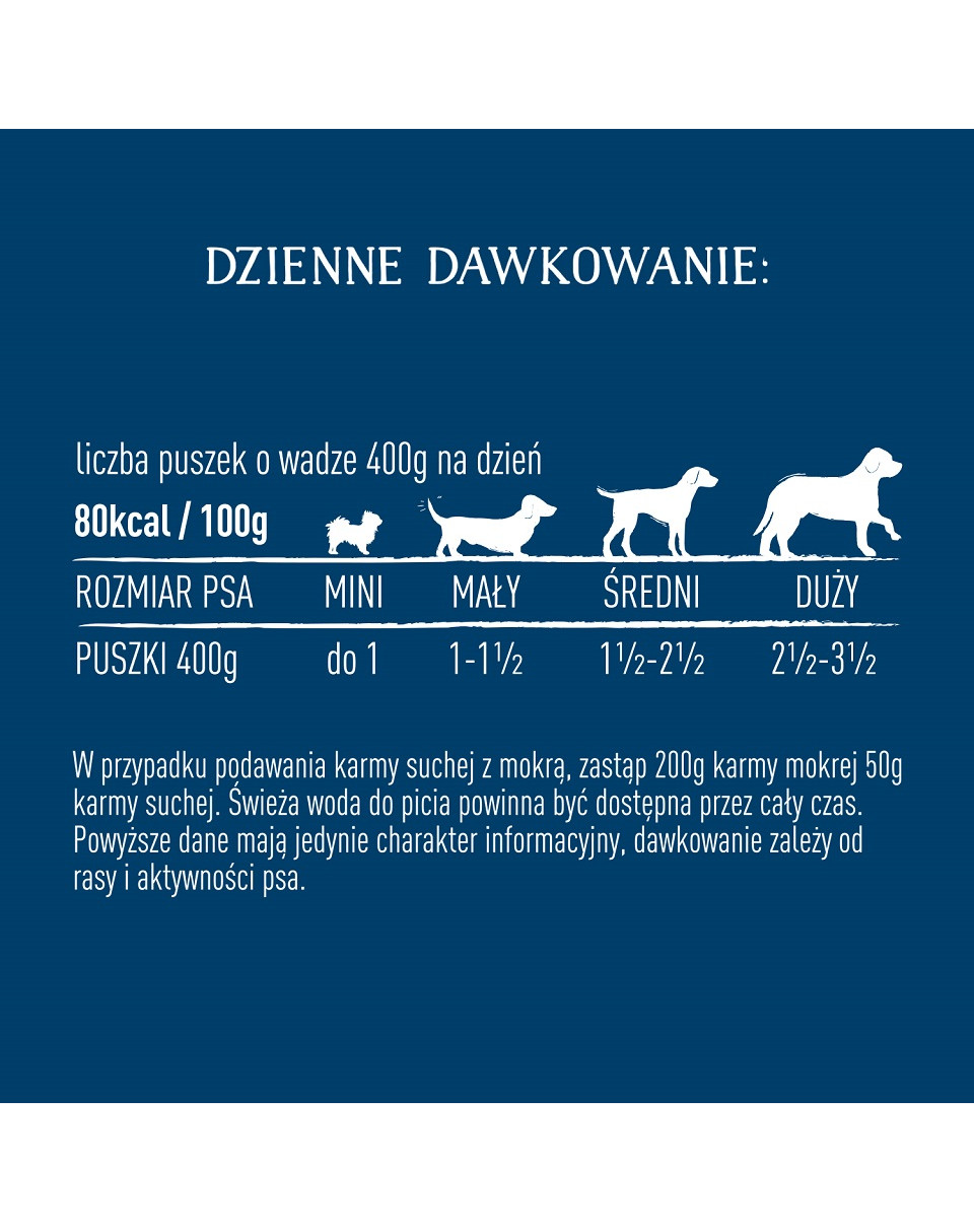 DZIENNE DAWKOWANIE (liczba puszek o wadze 400g na dzień) 80kcal/100g