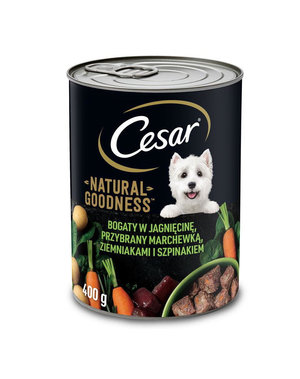 Mokra karma Cesar® Natural Goodness Bogaty w Jagnięcinę to pełnoporcjowe jedzenie dla dorosłych psów, wyprodukowana z użyciem naturalnych składników. Zostało przygotowane według starannie dobranej receptury, w której opracowaniu brali udział dietetycy i lekarze weterynarii z Instytutu Nauki o Zwierzętach WALTHAM™. To jedzenie dla psa można podawać w połączeniu z karmą suchą lub jako samodzielne, wyśmienite danie. Cesar® Natural Goodness Bogaty w Jagnięcinę zawiera nie tylko mięso i produkty pochodzenia zwierzęcego, ale także pyszne warzywa i zioła.