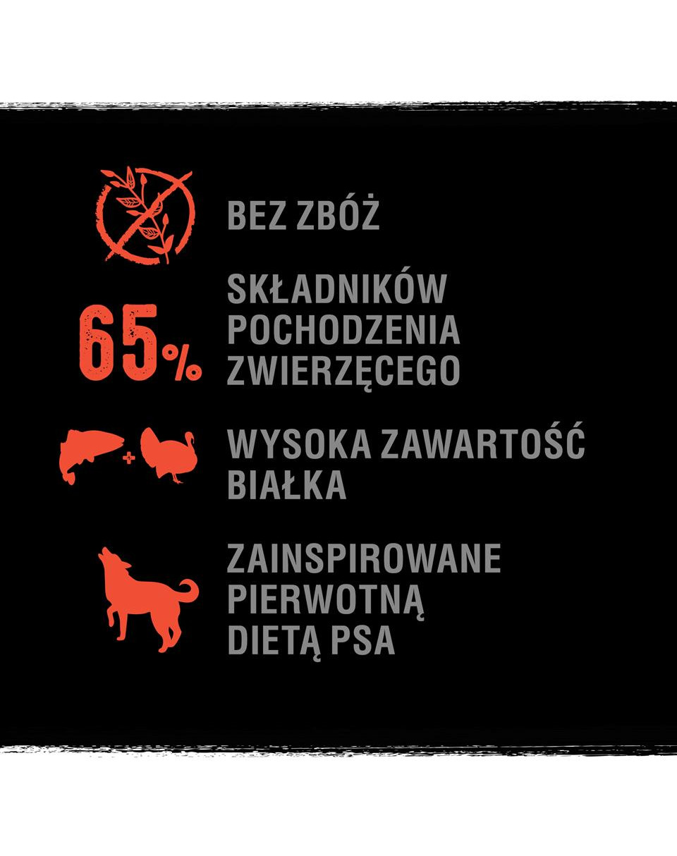 Bezzbożowy CRAVE™ Pasztet z Łososiem i Indykiem jest znakomitą pełnoporcjową karmą dla psa dorosłego. Ma apetyczną konsystencję i smak, który psy uwielbiają. Wyróżnia go wysoka zawartość białka pochodzenia zwierzęcego, które wspiera rozwój mięśni pupila oraz pomaga w zdrowym życiu. CRAVE™ Pasztet z Łososiem i Indykiem to także zaspokojenie jego pierwotnych potrzeb, wynikających z naturalnego instynktu. Dlatego w tej karmie dla psa nie znajdziesz sztucznych aromatów ani barwników, a do jej wytworzenia nie zastosowano zbóż, kukurydzy, soi ani produktów mlecznych. To jedzenie dla psa, któremu możesz zaufać. Codziennie podawaj pupilowi CRAVE™ Pasztet z Łososiem i Indykiem, aby wspierać instynktowne potrzeby swojego psa, które odziedziczył po dzikich przodkach.