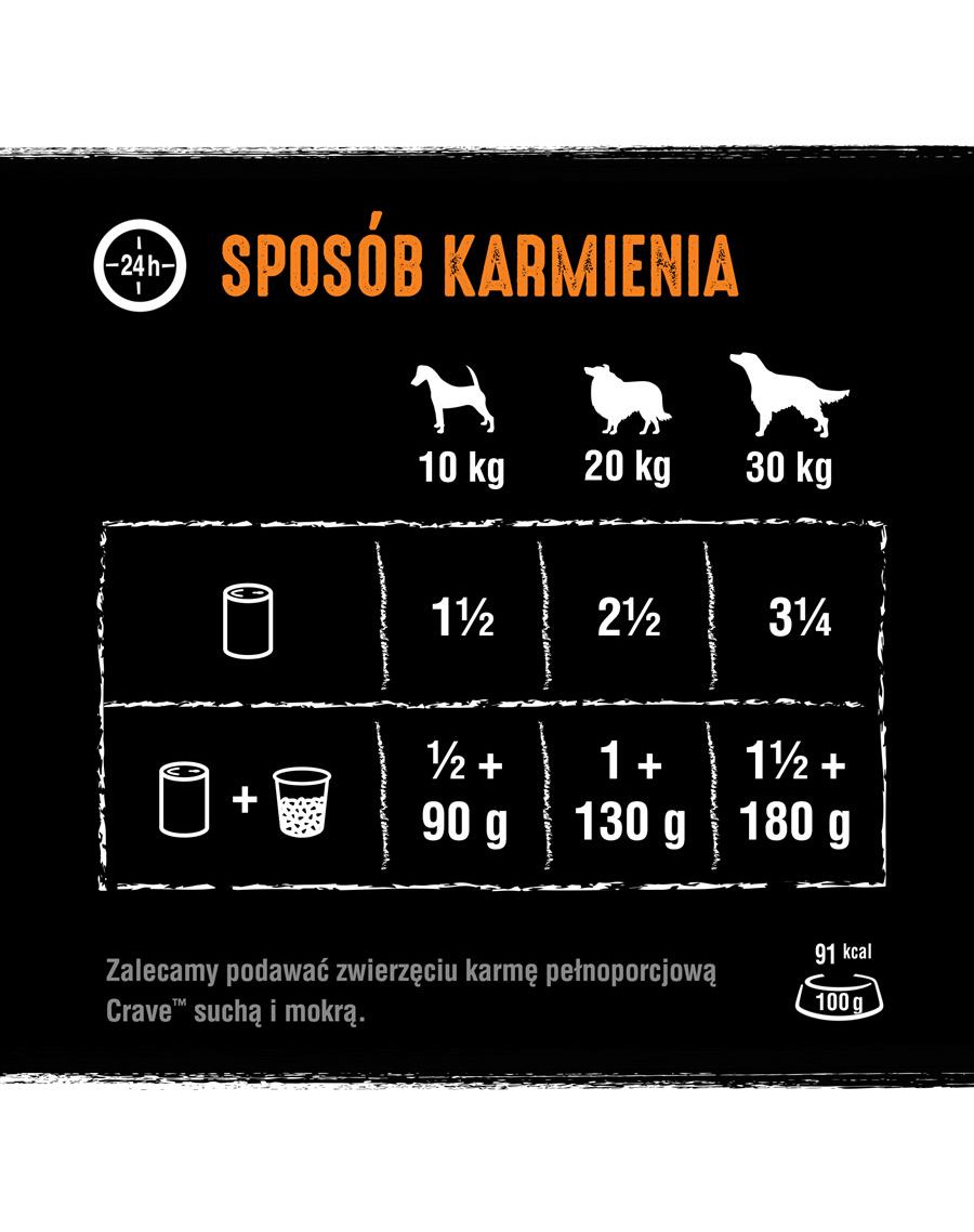 100 g karmy mokrej można zastąpić 23 g karmy suchej CRAVE.