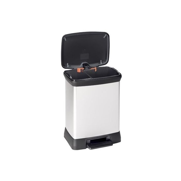 Wewnątrz posiada dwie oddzielne komory, dzięki czemu ułatwia segregację odpadów.