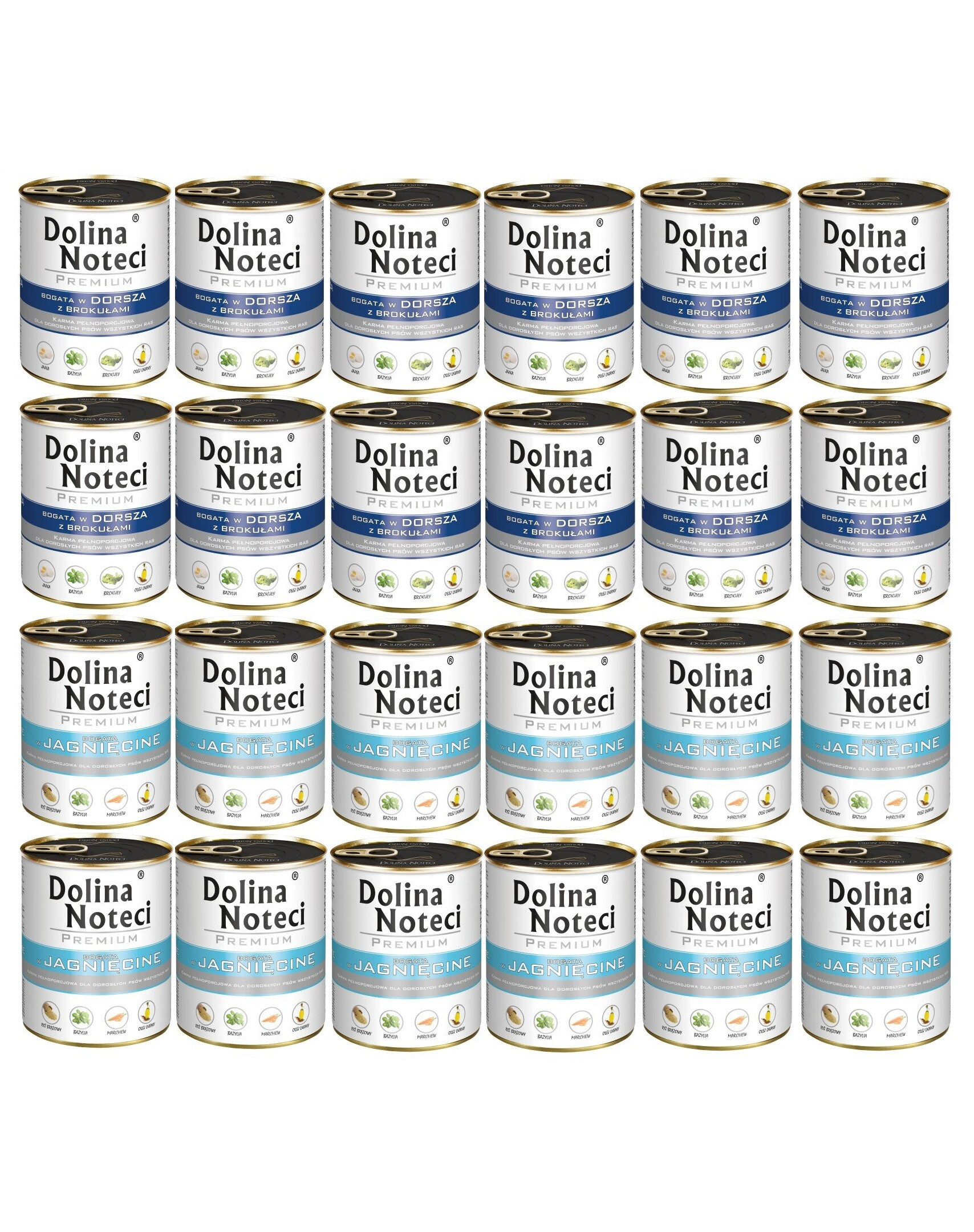Zestaw DOLINA NOTECI Mix smaków Premium Bogata w jagnięcinę i dorsza z brokułami 24x800g zawiera:
