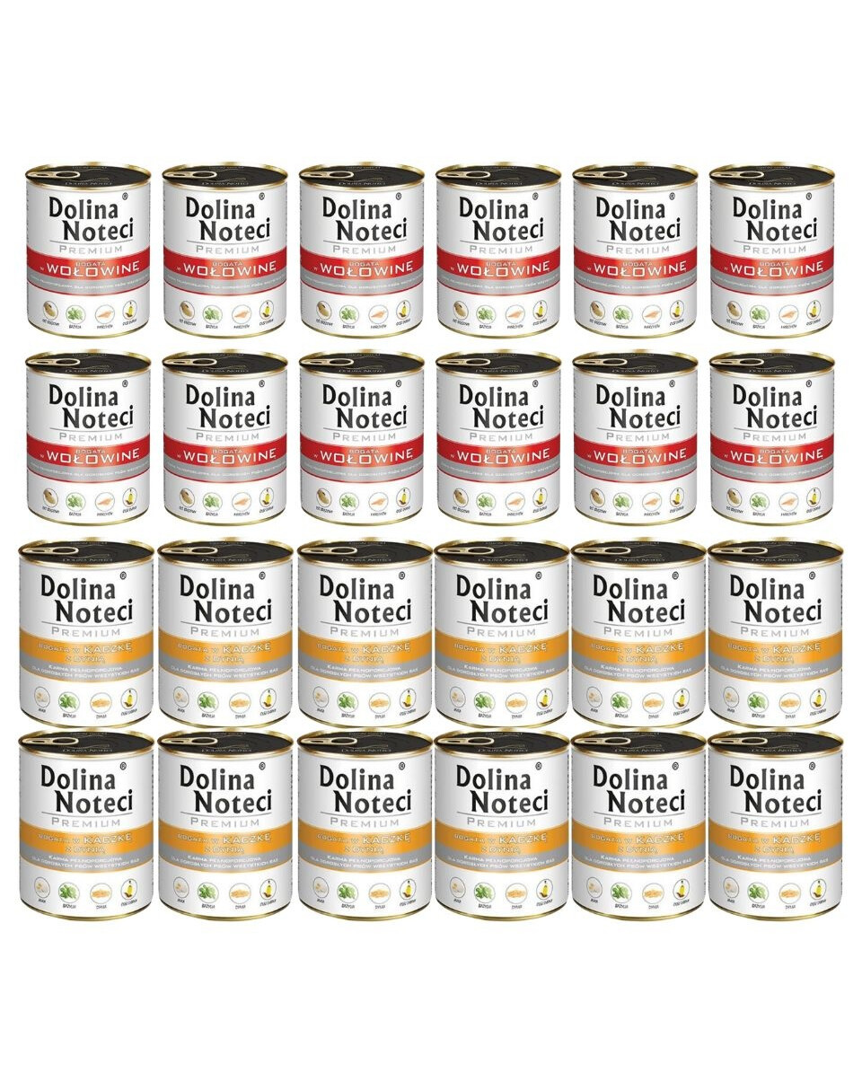 Zestaw DOLINA NOTECI Mix smaków Premium Bogata w wołowinę i kaczkę z dynią 24x800g zawiera: