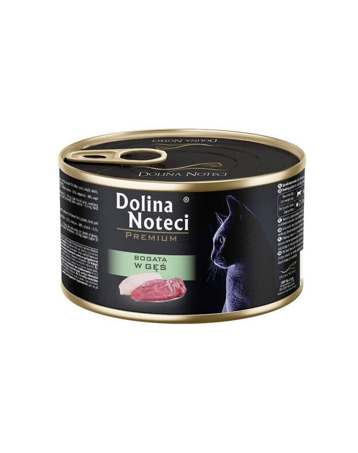 Mokra karma Dolina Noteci Premium bogata w gęś to pełnoporcjowa, bezzbożowa dieta stworzona z myślą o dorosłych kotach, która dostarcza wszystkich niezbędnych składników odżywczych i wspiera zdrowie na każdym etapie życia.