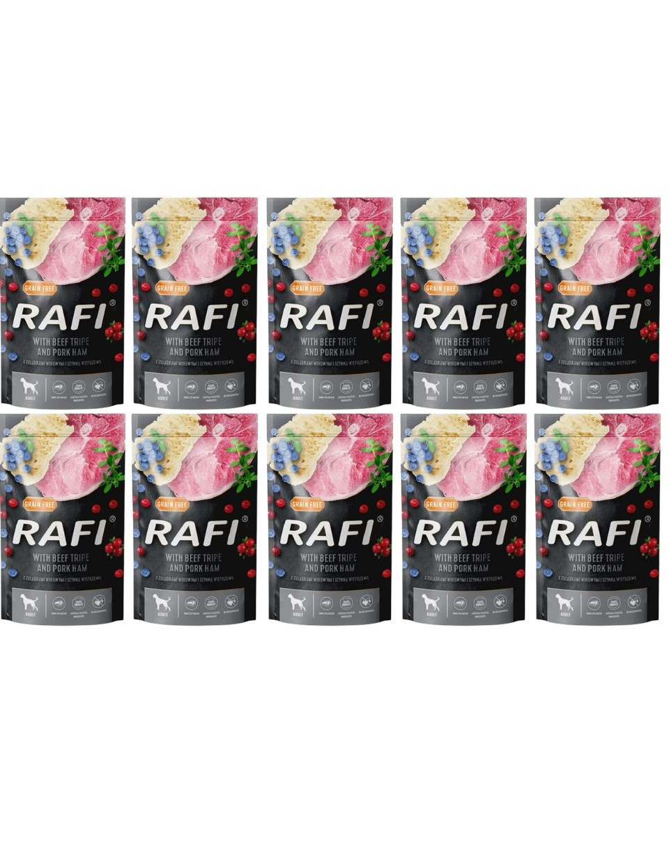 Receptura z żołądkami wołowymi i szynką wieprzową dostarcza niezbędnych składników mineralnych i witaminowych koniecznych do pokrycia zapotrzebowania dorosłych psów. Zapewnia odpowiednie zmineralizowanie kości i zębów oraz prawidłowy przebieg wszystkich procesów metabolicznych. Dodatek borówki amerykańskiej i żurawiny wzbogaca dietę psa o wiele cennych związków biologicznie czynnych, a tymianek zwiększa smakowitość posiłku.