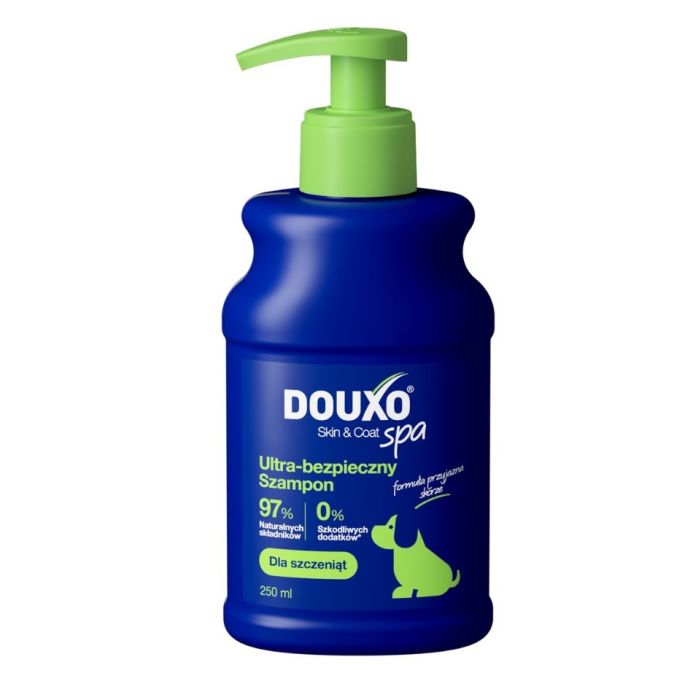 DOUXO Skin & Coat SPA – Ultra-bezpieczny szampon dla szczeniąt Delikatnie oczyszcza i intensywnie nawilża skórę, pielęgnuje sierść, pozostawia ją miękką, puszystą i pachnącą. Formuła przyjazna dla wrażliwej skóry.