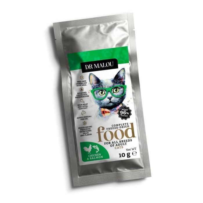 DR MALOU Liofilizowana karma Kurczak z łososiem 10 g sucha karma dla kotów