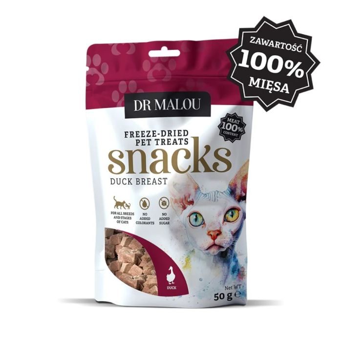 DR MALOU Mięsne kostki 100% liofilizowanej piersi z kaczki 50g przysmaki dla kotów