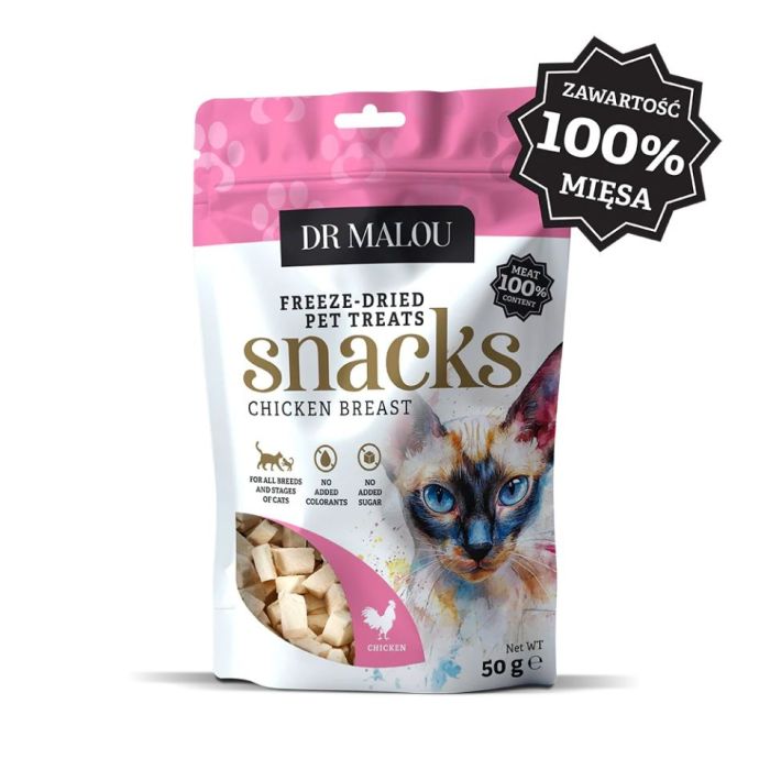 DR MALOU Mięsne kostki 100% liofilizowanej piersi z kurczaka 50g przysmaki dla kotów