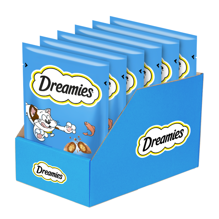 Pysznie chrupiące na zewnątrz i mięciutkie w środku. KOTY NIE POTRAFIĄ OPRZEĆ SIĘ przysmakom DREAMIES. I zaskoczymy Cię – nie użyliśmy żadnego sekretnego składnika ani magii, aby były tak pyszne. Po prostu, wypełniliśmy te przysmaki mnóstwem pyszności, które koty uwielbiają. A więc, potrząśnij torebką i patrz, jak przybiega Twój kot.