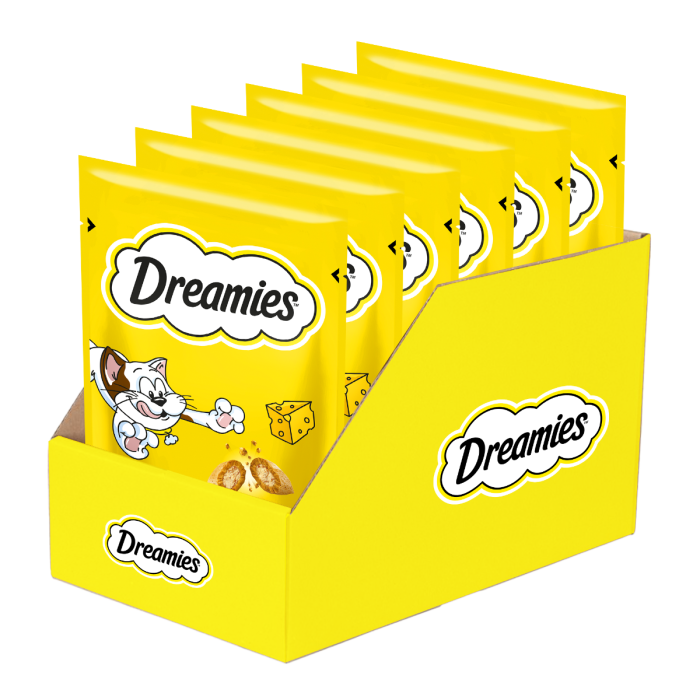 Pysznie chrupiące na zewnątrz i mięciutkie w środku. KOTY NIE POTRAFIĄ OPRZEĆ SIĘ przysmakom DREAMIES. I zaskoczymy Cię – nie użyliśmy żadnego sekretnego składnika ani magii, aby były tak pyszne. Po prostu, wypełniliśmy te przysmaki mnóstwem pyszności, które koty uwielbiają. A więc, potrząśnij torebką i patrz, jak przybiega Twój kot.