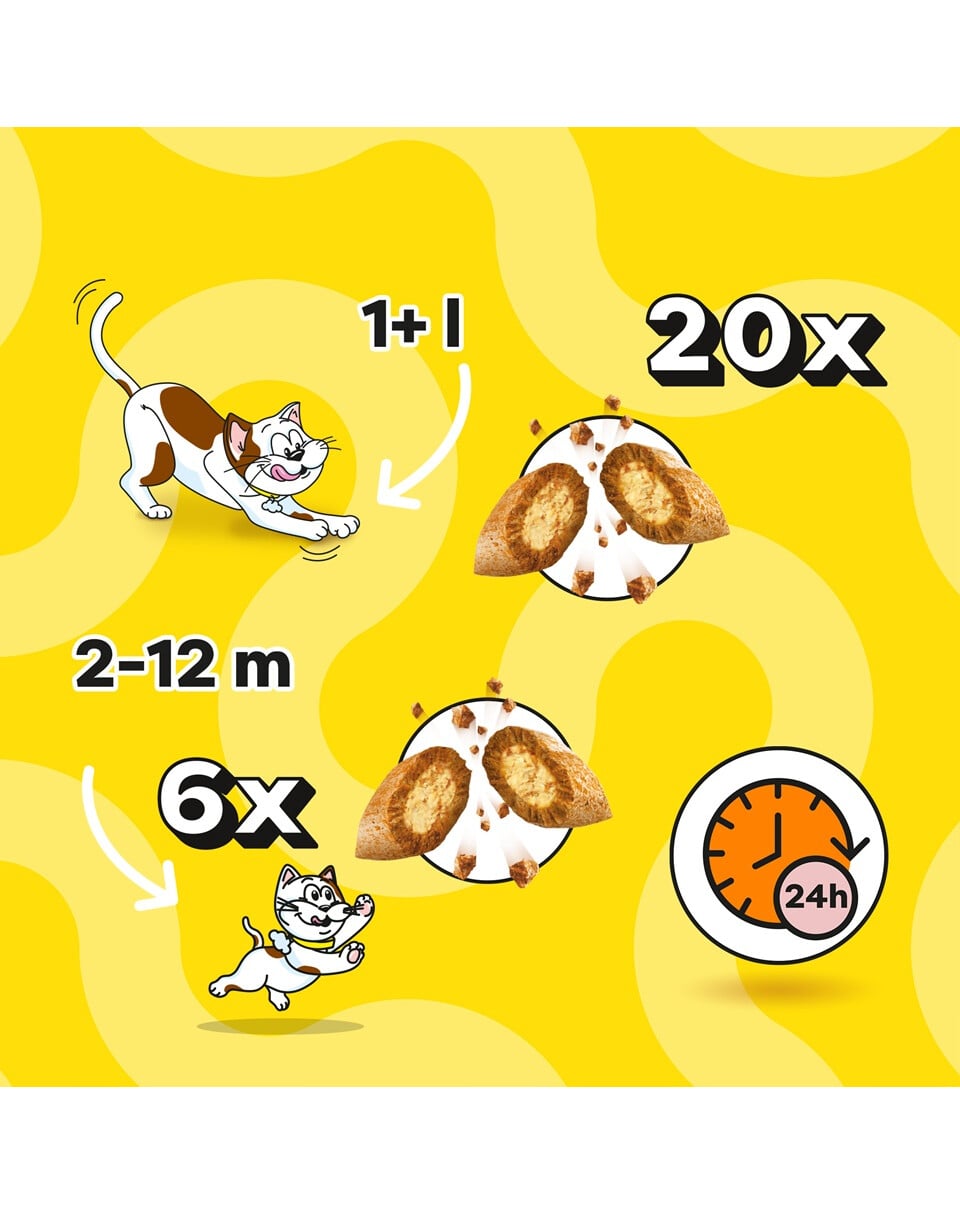 Dreamies o smaku wybornego łososia to wyśmienite chrupiące paszteciki z miękkim nadzieniem dla kotów powyżej 8. tygodnia życia. Ich skład został opracowany przez specjalistów ds. żywienia i lekarzy weterynarii z Instytutu Nauki o Zwierzętach WALTHAM, dzięki czemu przysmaki Dreamies™ nie tylko mają doskonały smak, ale także są wzbogacone minerałami i witaminami. Paszteciki Dreamies są doskonałą przekąską, którą mile zaskoczysz swojego kociego przyjaciela. POTRZĄŚNIJ opakowaniem i zobacz, jak przybiega Twój kot!