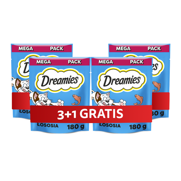DREAMIES Mega Pack Chrupiące przysmaki dla kota o smaku łososia 4x180 g
