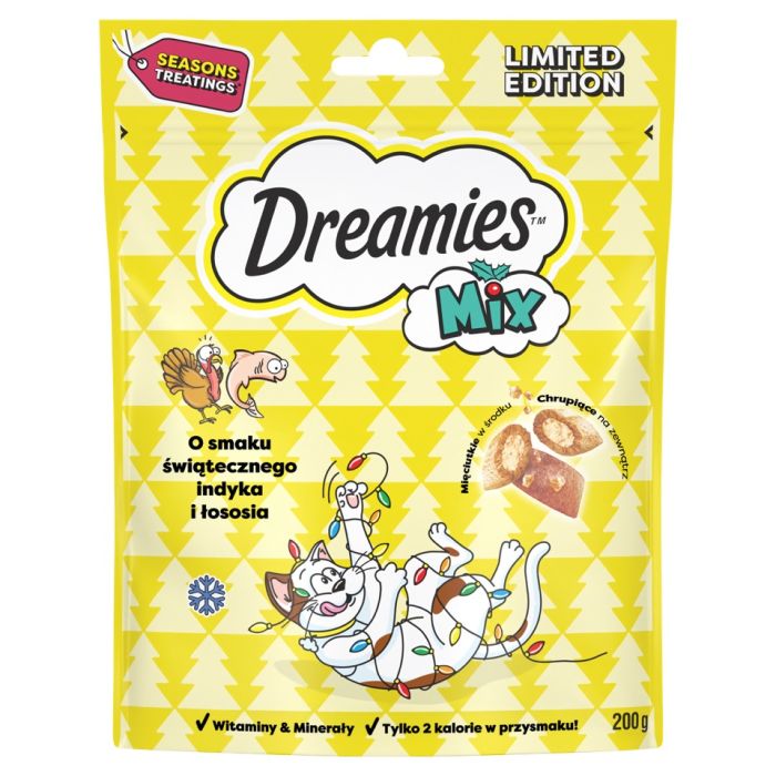DREAMIES Mix 200g karma uzupełniająca o smaku świątecznego indyka i łososia dla dorosłych kotów i kociąt powyżej 8 tyg.