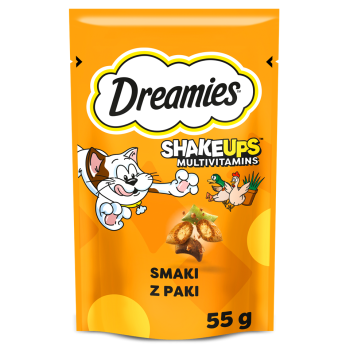 DREAMIES Shake Ups Multivitamins Chrupiące przysmaki dla kota Smaki z paki 55 g
