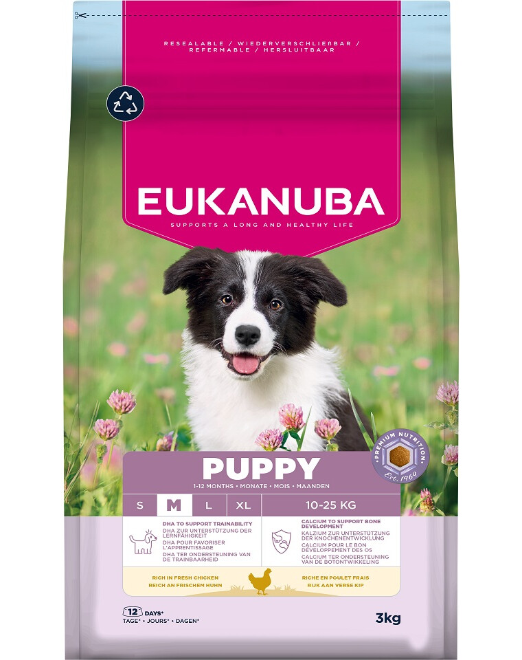 EUKANUBA Puppy Medium Breeds Chicken – sucha karma dla szczeniąt ras średnich, bogata w świeżego kurczaka