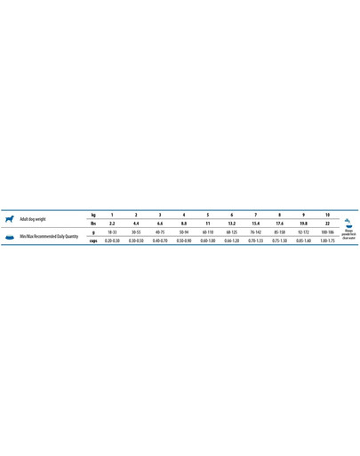 Podane dawkowanie jest orientacyjne i należy dopasować je do swojego zwierzaka indywidualnie, biorąc pod uwagę stopień aktywności oraz stan zdrowia zwierzęcia.