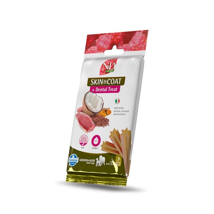 FARMINA N&D Quinoa Dental Treat Skin Coat Duck Medium/Maxi 100 g (7 szt) przysmak dentystyczny dla średnich i dużych psów