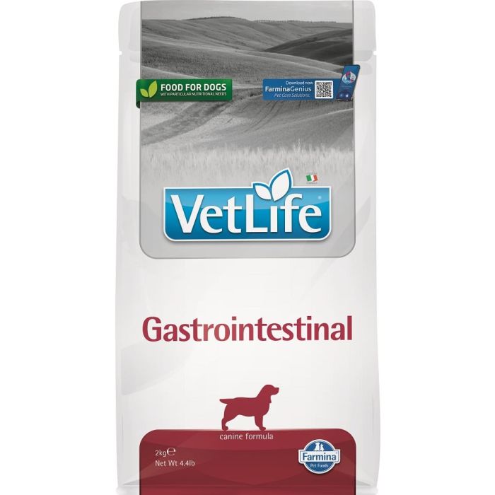 Farmina Vet Life Gastrointestinal to pełnoporcjowa dietetyczna karma dla psów w ograniczeniu ostrych zaburzeń wchłaniania jelitowego, w przebiegu ostrej biegunki oraz w okresie rekonwalescencji, wyrównywanie zaburzeń trawienia i w przypadku chronicznej niewydolności trzustki.