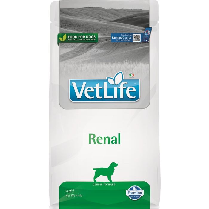 Farmina Vet Life Renal to pełnoporcjowa dietetyczna karma dla psów wspomagająca funkcję nerek w przypadku ich chronicznej niewydolności lub tymczasowej niewydolności nerek.