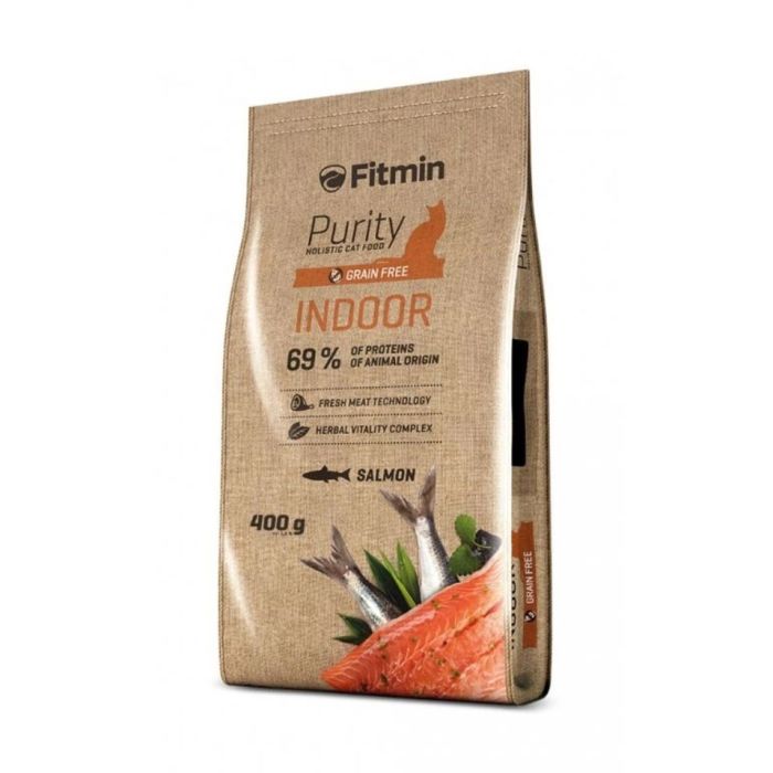 Fitmin Purity Indoor to pełnoporcjowa karma dla dorosłych kotów niewychodzących z domu. Z zawartością białka pochodzenia zwierzęcego na poziomie 69%.