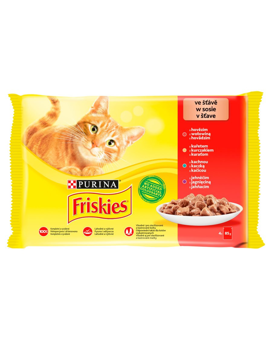 Karma mokra Friskies to w pełni zbilansowana karma, która dostarcza kotom składniki odżywcze niezbędne do prawidłowego funkcjonowania oraz smaki, które pokocha. Wspiera zdrowie, witalność i dobre samopoczucie kota. Dzięki wysokiej zawartości wody sprzyja produkcji bardziej rozcieńczonego moczu zapobiegając tym samym kamicy nerkowej.