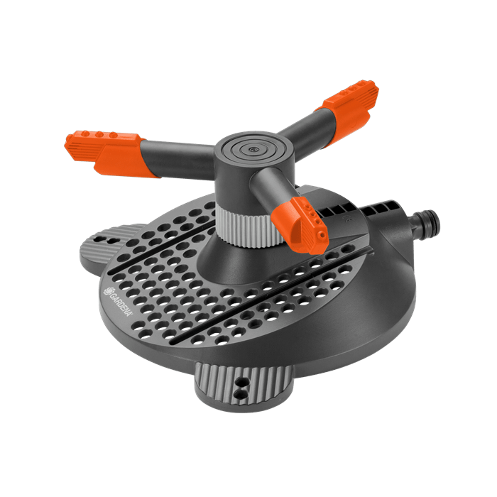 GARDENA Samba to klasyczny zraszacz dookolny, który idealnie sprawdzi się w ogrodach przydomowych i na trawnikach. Dzięki regulowanemu zasięgowi od 3 do 18 metrów i precyzyjnym dyszom, rozprowadza wodę równomiernie, zapobiegając tworzeniu się kałuż. Stabilna podstawa zapewnia pewne ustawienie na podłożu, a jednocześnie ułatwia przenoszenie urządzenia. Zraszacz wyposażono w wymienny filtr wychwytujący zanieczyszczenia, co zwiększa jego trwałość i ułatwia konserwację.