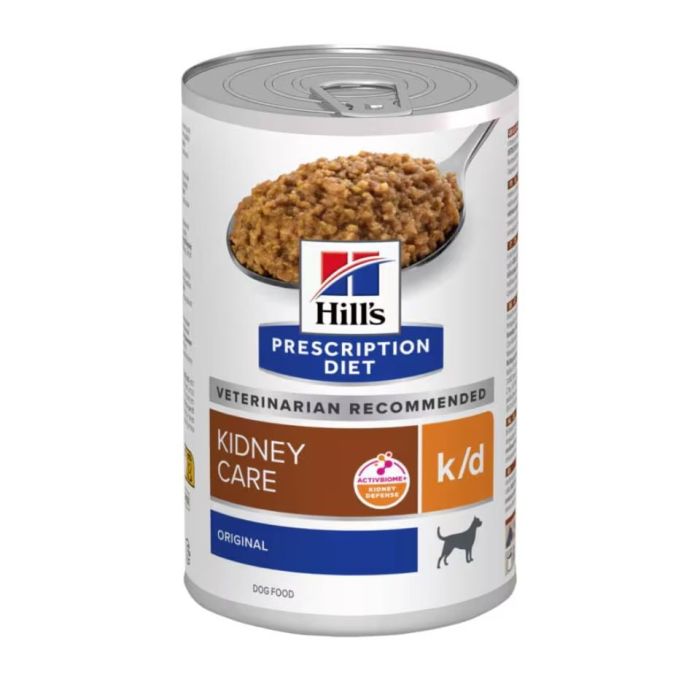 Hill's Prescription Diet k/d karma dla psów to pełnoporcjowa dietetyczna karma wspomagająca funkcjonowanie nerek w przewlekłej lub przejściowej niewydolności nerek u dorosłych psów. Karma ta ma niską zawartość fosforu i zawiera ograniczoną ilość wysokiej jakości białka.