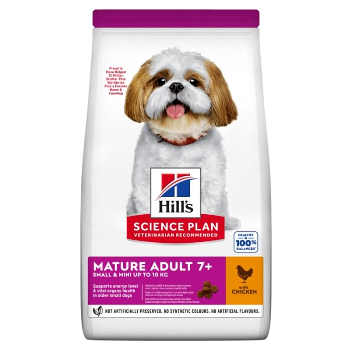 Dużo miłości w małym rozmiarze. Karma dla psów HILL'S SCIENCE PLAN Small & Mini Mature Adult 7+ z kurczakiem została specjalnie opracowana z myślą o wspieraniu godnego starzenia się psów ras małych i miniaturowych. Specjalnie przygotowana z naszymi najmniejszymi krokietami i synergistyczną mieszanką składników odżywczych wspierającą wigor i energię.