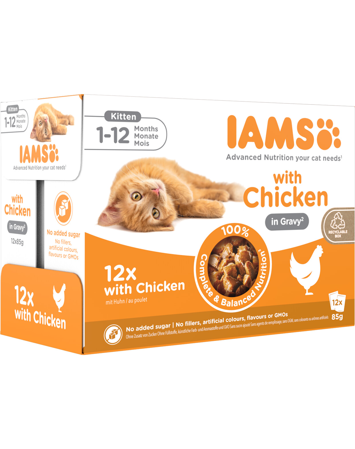 IAMS Delights z Kurczakiem w Sosie to w 100% kompletna i zbilansowana mokra karma premium przeznaczona dla kociąt.