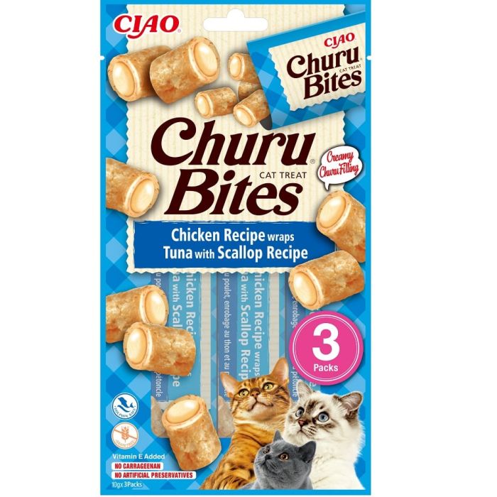 INABA Churu Bites Chicken 3x10g wrapy z kurczakiem, tuńczykiem i przegrzebkami dla kota
