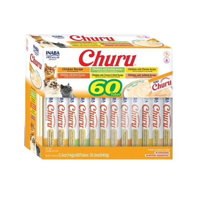 Unikalne kremowe smakołyki Churu dla kotów prosto z Japonii. Churu są niskokaloryczne, nie zawierają zbóż i konserwantów, są produkowane z mięsa pochodzącego od kurczaków z wolnego wybiegu, naturalnie hodowanych na ściśle nadzorowanych fermach oraz z tuńczyka dalekomorskiego odławianego w sposób zrównoważony i certyfikowany i bezpieczny dla delfinów.