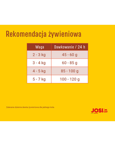 JosiCat Tasty Beef zaspokoi podniebienia małych miłośników wołowiny. Dzięki odpowiednio zbilansowanej recepturze JosiCat Tasty Beef dostarcza na co dzień wszystkich niezbędnych składników odżywczych dla kotów domowych i wychodzących.